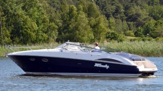 Utrustad med: mörklåa skrovsidor, ankarspel i fören, bogpropeller, fullteak, trimplan med indikatorer, logg/ekolod Raymarine tridata, Garmin 4010, Garmin vhf, roderindikator, hamnkapell och fullkapell, kompass, soldynor fördäck, septiktank med 3-vägskran och elektrisk pump, landström med laddare, extra service samt start batterier, varmvattensberedare, Wallas keramisk spis, dusch på badbrygga samt i tolaettutrymmet, vattenskidkrok, 3 kylskåp, brandsläckningssystem, el manövrerbart ryggstöd i soffan, elektronisk motorlucka, Stereo med 4 högtalare, tampar och fendrar.