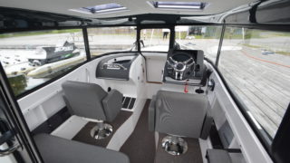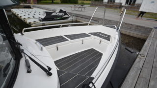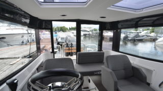 Garmin 7412 xsv med sjökort och ekolod, extra sittplats akterdäck med fenderförvaring, webasto dieselvärmare 4kw, folierade skrovsidor, bottenmålning, tak i mörkgrått, Fusion stereo med bluetooth, mattor i kabinen.