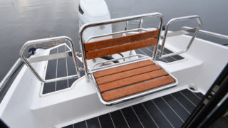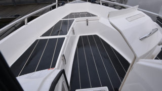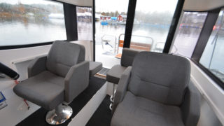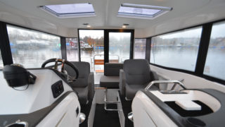 Utrustad i övrigt med: Webasto 4kw värmare, trimplan, Simrad 12 tums plotter, vita skrovsidor, svart bottenfärg, grindar i akter, flexiteak utvändigt, mattor i kabin, sökarljus.