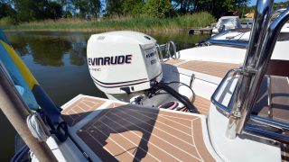 Gångtimmar: 274 | GPS/ plotter (Raymarine), kompass, värmare, sökarlampa, kompositdurk, dubbla vindrutetorkare, signalhorn, akterdäcksmodul med fällbar soffa och fenderförvaring, kompass, folierade skrovsidor (carbon colour) mm.