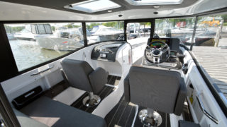 Utrustad med: Bottenmålning, foliering, Webasto värmare, Simrad 12 tums plotter, stereo med blåtand, akterbelysning, belysning framåt, durkbelysning, flexiteek inne och ute, svarta räcken och handtag, trimplan med automatik, bänk/fenderförvaring i aktern, D-avbärarlist, hydraulstyrning, securmärkt, 2 x vindrutetorkare, badstege, 2 x takluckor.