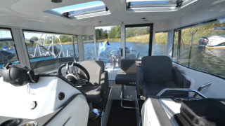 Garmin 102xs med ekolod, trimplan, 2 x vindrutetorkare, akterbänk med fenderförvaring och grindar, flaggstång, bord, matta i hytten, Cd/radio med 2 högtalare, höj och sänkbara förar och passagerarstolar, webasto dieselvärmare (at3900), 3 x Hella strålkastare på taket, folierade skrovsidor, bottenmålad, svart targabåge, 2 x takluckor, kompass, lanternor, bottenmålad.