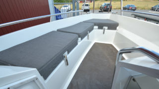 Utrustad med: Lanternor, trimplan, brandsläckare, självläns, badstege, kapell till stolar, dynor i sunbrella klädsel, anti-halk durk, automatisk och manuell länspump, vindrutetorkare, hydraulisk styrning, 12v uttag, dämpade stolar fram, kapell, ryggstöd och dynor bredvid aktersoffan, färgade skrovsidor, bottenmålning, Redknows söksystem, automatiska trimplan, Raymarine hybridtouch plotter.