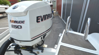 Båten är motoriserad med en Evinrude E-tec 250 med endast 246 gångtimmar.