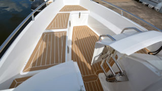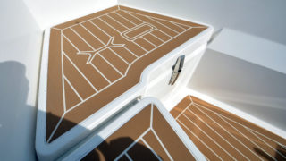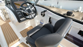 Utrustad med vit foliering, svart bottenmålning, flexiteek durk, Simrad 12 tums plotter med ekolod, körkapell, stereo, trimplan med indikatorer, aktergrindar, dynor, överdrag för stolar, soffa samt instrumentering, flagga med flaggstång, XO förtöjningskit, ankare, targabåge, 2 x vindrutetorkare, securmärkt skrov och motor, levereras med 2 nya AGM batterier, hydraulstyrning.