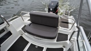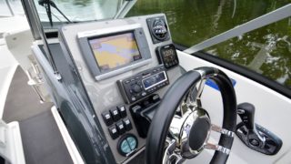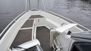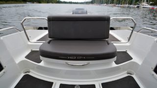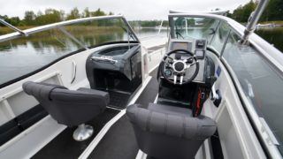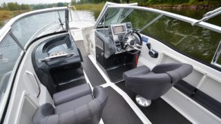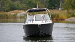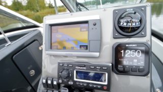 Utrustad med: Garmin 720 med ekolod och sjökort, helkapell (renoverat) stereo med två högtalare, trimplan, 2 x vindrutetorkare, soffa med dyna i aktern och öppningsbara grindar, targabåge i rostfritt stål, ställbar ratt, stävgummi, elektroniskt reglage, digitalt multifunktionsinstrument.
