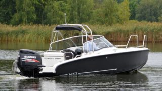 Bestyckad med en Suzuki 300 hk tillverkad 2012 men endast använd av generalagenten därav säljs båten med 2 års fabriksgaranti, ca 95 gångtimmar, leveras nyservad.