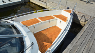 Båten är från 2009 och har nyligen rustats upp med nytt kapell, nya folierade sidor och en genomgång av teaken.