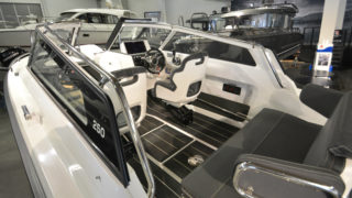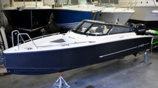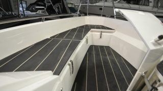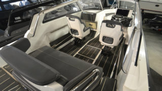 Utrustad med: Bottenmålning, nyfolierade svarta skrovsidor, flaggstång med flagga, Simrad NSS 12 tums plotter med sjökort och ekolod, kylskåp draglåda, trimplan, dämpade stolar, lanternor, badstege, dubbla batterier, helkapell, hamnkapell, flexiteek durk, solbädd i aktern med dynor, stävgummi,
