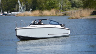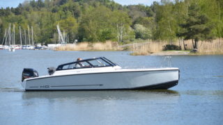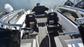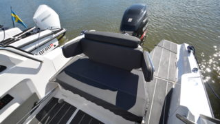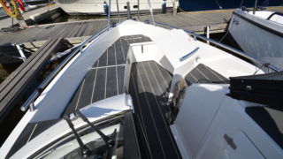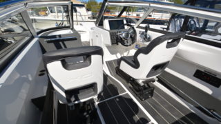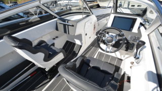 Utrustad med: Bottenmålning, folierade skrovsidor, trimplan, Garmin 12 tums plotter med touchskärm och sjökort, körkapell, stolsöverdrag, flexiteek durkar, solbädd i aktern, lanternor, 2 x vindrutetorkare, dubbla dämpande stolar, securmärkt skrov, hydraulstyrning, dynor på fördäck.
