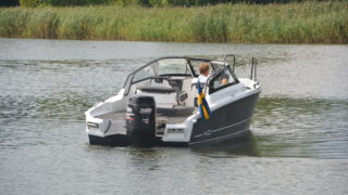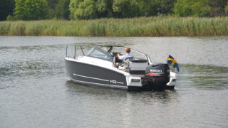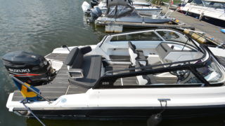 Utrustad med: Bottenmålning (2025), folierade skrovsidor (nytt 2025), 2 x vindrutetorkare, fleexiteakdurkar, stolsöverdrag till stolar, soffa samt instrumentering, hamnkapell, körkapell, länspump, Simrad NSS12 plotter med Navionics sjökort, lanternor, dämpade XO-sport stolar, ställbar ratt, automatiska trimplan, aktersoffa som lätt kan bäddas om till solbädd, kylskåp draglåda, flaggstång, förtöjningspaket, osv.