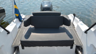 Färgsättning: svart bottenmålning, mörkgrå carbon foliering, svart flexiteek med vit nåt, mörkgråa dynor. mörkgrått kapell