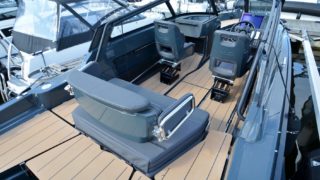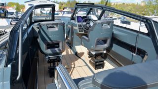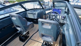 Färgsättning svart, SIMRAD NSS12 EVO3 + Ekolod, FUSION stereo, AM/FM/ipod/USB-Fusion Link, Bluetooth, 4 Högtalare, antenn, FUSION True Marine Full Range D-Class 2 kanal slutsteg, 2 ADDITIONAL SPEAKERS, ZIP WAKE – Trimplan, Hydraulstyrning, ESTHEC deck, SKROVFILM, 3M Carbon svart, Bottenmålning svart, Körkapell, Hamnkapell, Stävgummi, 2 x Fullfjädrade stolar, XO Sport, Kyllåda, Dubbla batterier.