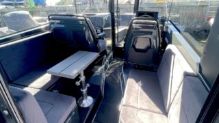 Standardutrustad med: Lenco trimplan, Hydraulstyrning, Vindrutetorkare SB, Taklucka manuell, Fjädrande förarstol XO exclusive, Folierade skrovsidor, Dubbelsäte passagerarsidan.