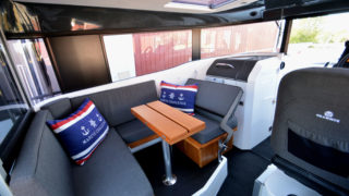 Utrustad med bla: Flaggstång med fäste, akterbänk med fenderförvaring, matta i hytten, Webasto värmare, bogpropeller, folierade skrovsidor, bottenmålning, radio med 2 högtalare, LED-ljusramp på taket, stävgummi, madrass till kojen framför föraren, automatiska trimplan, mörkgrått tak, dämpad förarstol, Simrad 12 tums plotter, Ais, 4G radar, satelitkompass, Vhf, solceller, kylskåp draglådemodell, spårsändare.