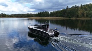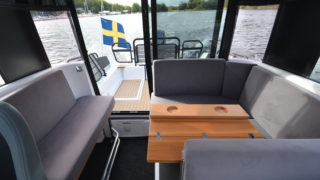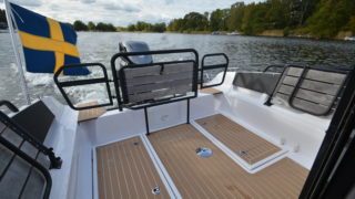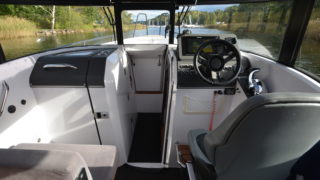 Bra utrustning: Simrad 12 tums plotter med ekolod samt sjökort, radar, Webasto värmare 4kw, automatiska trimplan, hydraulstyrning, bogpropeller 2kw, sökarljus Marinco med fjärr, Esthec durk utvändigt, mattor invändigt, folierade skrovsidor Carbon, extra sittplatser akterdäck med fenderförvaring och aktergrindar, stävgummi, svart bottenmålning, fullfjädrad förarstol XO Exclusive, grabbräcken på tak, eltoalett med septiktank, bord i hytten, kylskåp under förarplatsen, XO förtöjningskit, flaggstång med flagga, Fusion ljudanläggning med 4 högtalare och bluetooth, fällbara sidobänkar på akterdäck samt bordsfäste, avbärarlist D-list 1/2 båten, madrass till sovutrymmet, motorlås.
