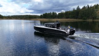 Bestyckad med en Suzuki DF350 med dubbla propellrar, som gått 287 timmar sedan ny, levereras nyservad.