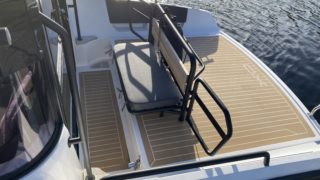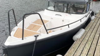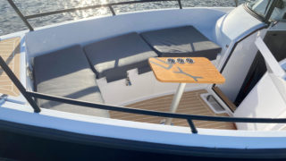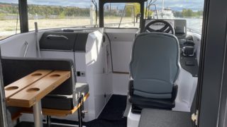 Utrustad med: Svart XO folie, svart bottenmålning, bogpropeller, XO blackline pulpits, trimplan, Flexiteek ute i snygg ljus kulör, Simrad 12″ plotter, Teakbänk med grindar och fenderhållare på akterdäck, dynor fördäck och akterdäck, Eltoalett med septiktank, kylskåp under förare, Grammer dämpad stol, gångvärme med defroster, Webasto 4kw dieselvärmare, bäddbar salong, bord inne och ute på fördäck, signalhorn, kompass, 2 x vindrutetorkare, tampar och fendrar.