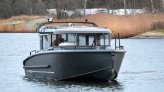 Standardutrustad med: trimplan, hydraulstyrning, Estech durkar utvändigt, folierade skrovsidor.