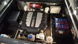 Bestyckad med en Mercury V8 diesel på 370 hk med duoproppdrev som endast gått 38 timmar, levereras nyservad. Marschfart kring 32-34 knop och topp över 40.
