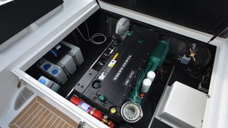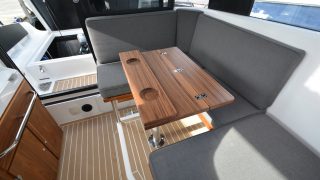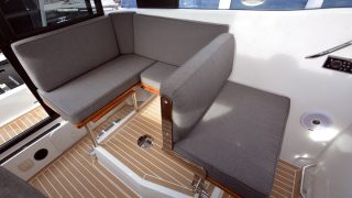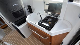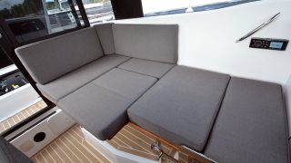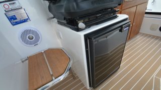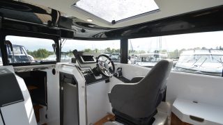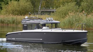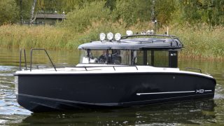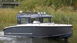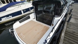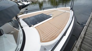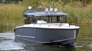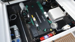 50h, bogpropeller, värmare, elektriskt toalett, automatiska trimplan, kylskåp, dämpad förarstol, Raymarine plotter, Fusion stereo, Black line, svart tak, bottenmålning, folierade skrovsidor, arbetsbelysning, sökarljus med fjärr, Volvo Penta D6-370