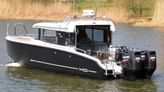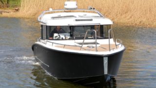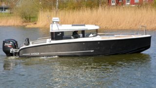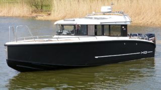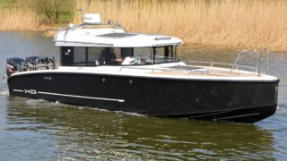 Standardutrustad med: Trimplan, hydraulstyrning, Estech durkar utvändigt, folierade skrovsidor.