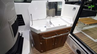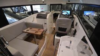 Modellen erbjuder kompromisslös komfort i kombination med goda fartresurser med möjlighet till upp till 370 hk inombordare, Ta med hela familjen på en trygg och säker färd genom den vackra skärgården. Övernattningsbar för upp till 2 vuxna + 2 barn.