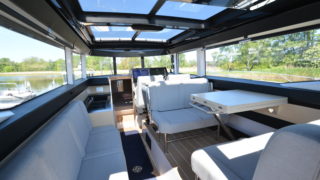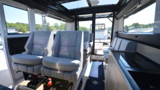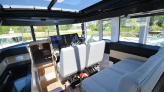 Utrustad med: folierade skrovsidor, bottenmålning, Zipwake trimplan, Webasto 5,5kw dieselvärmare, 2 x Simrad NSS16 med ekolod, 4g bredbandsradar, sjökort, GoFree Wifi, vhf, samt digital kompass, öppningsbart panoramatak, sökarljus med fjärr, bogpropeller, Esthec durkar invändigt och utvändigt, 3 x vindrutetorkare, ankarspel i fören, ankarspel i aktern med fjärr, stävgummi, Dämpade stolar, bord akterdäck, Fusion ljudsystem, kylskåp, köksmodul med diskho, induktionshäll, varm och kallvatten, dusch ute och inne, landström med laddare, eltoa.