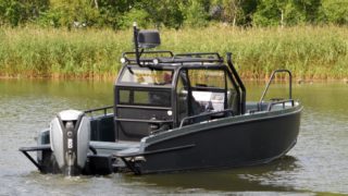XO är kända för sina kvalitetsbåtar i Aluminium. Modellen är riktigt kaxig och robust, den bygger på skrovet från den mycket populära XO 250 Open. Unik och innovativ mittpulpet med gasdämpade förarstolar.