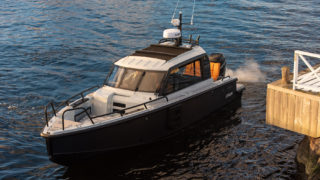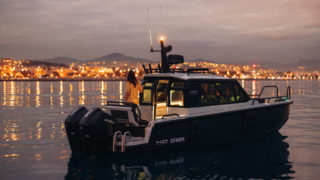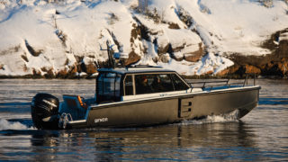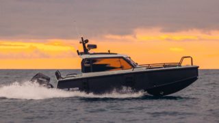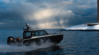 NYA DFNDR 8 Modellen är riktigt kaxig och robust. Det är en unik och innovativ mittpulpet med gasdämpade förarstolar, möjlighet till dubbla plottrar från Simrad, med eller utan kapell och för dom kyliga dagarna en värmare från Webasto.