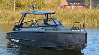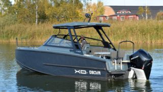 I grunden er detta samma båt som XO DSCVR – open men med skillnaden att en stilfull och praktiskt targabåge med glasfibertak sitter monterat. Detta ger förutom det snygga utseéndet ett bra skydd mot regn och sol. Vill man också ha radar eller annan utrustning på taket så finns alla möjligheter.