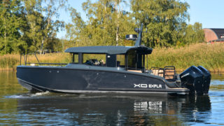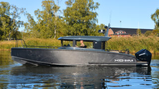 XO är kända för sina gedigna aluminiumskrov med folierade skrovsidor. Båten blir tyst tack vare isolering mellan skrovet och innerlinen, som är i glasfiber. Allting känns också väldigt ombonat till skillnad från många andra råare aluminiumbåtar på marknaden.