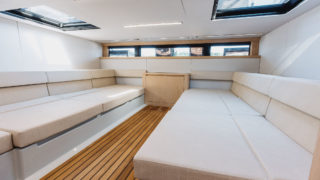 Med en design för alla klimat säkerställer XO EXPLR 44 komfort med sitt avancerade luftkonditionerings- och värmesystem. Det finns utrymme för solpaneler på taket och skenor för takräcken för att rymma cyklar och sportutrustning. Solbäddarna i för och aktern förvandlas till perfekta loungeområden för avkoppling med något svalkande efter en dag ombord.