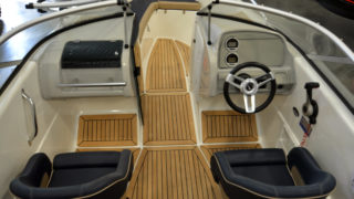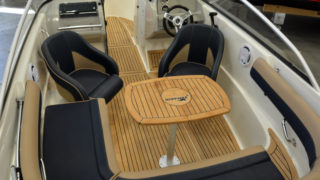 Utrustad med: fullteak, körkapell, kapellgarage, bord med fot samt soldyna i aktern, digitala multifunktionsinstrument, stolsöverdrag.