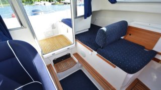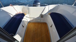 40 gångtimmar, utrustad med: GPS/ plotter (Garmin 720s), ekolod, AIS med WiFi, teakserie inne och ute, peke i fören med stege, akterkapell, mörkläggningsgardiner, dynserie ute och inne, ankarspel i aktern, värmare