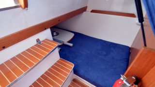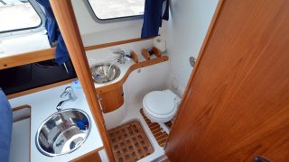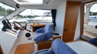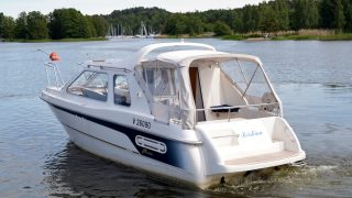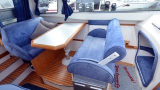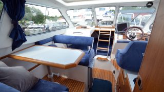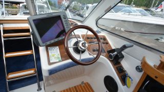 utrustad med: Alcantara-klädsel, WC med septitank och däckstömmning, rinnande kallt- och varmt färskvatten, dusch, Kyl med frysfack, Keramisk spis (diesel), värmare, gångvärme/defroster, CD/radio, Solcellsdriven friskluftsfläk, teakbord på akterdäck, kapell över akterdäck, servostyrning, trimplan, powertrim, plotter/ekolod (Lowrance HDS 10 med sjökort över hela Östersjön), kompass, bogpropeller, dubbelbatterisystem, teakdäck, brandsläckare, ankare, ankarrulle, 4 fendrar samt förtöjningsutrustning.