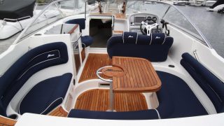 Utrustad med ny plotter från Garmin med sjökort, Ny radio/stereo, bottenmålning, körkapell, hamnkapell, spis, färskvatten, dynor i sittbrunnen samt kabinen.