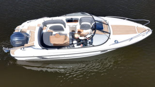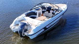 En trevlig övernattningsbar sol och badbåt från Finska Yamarin